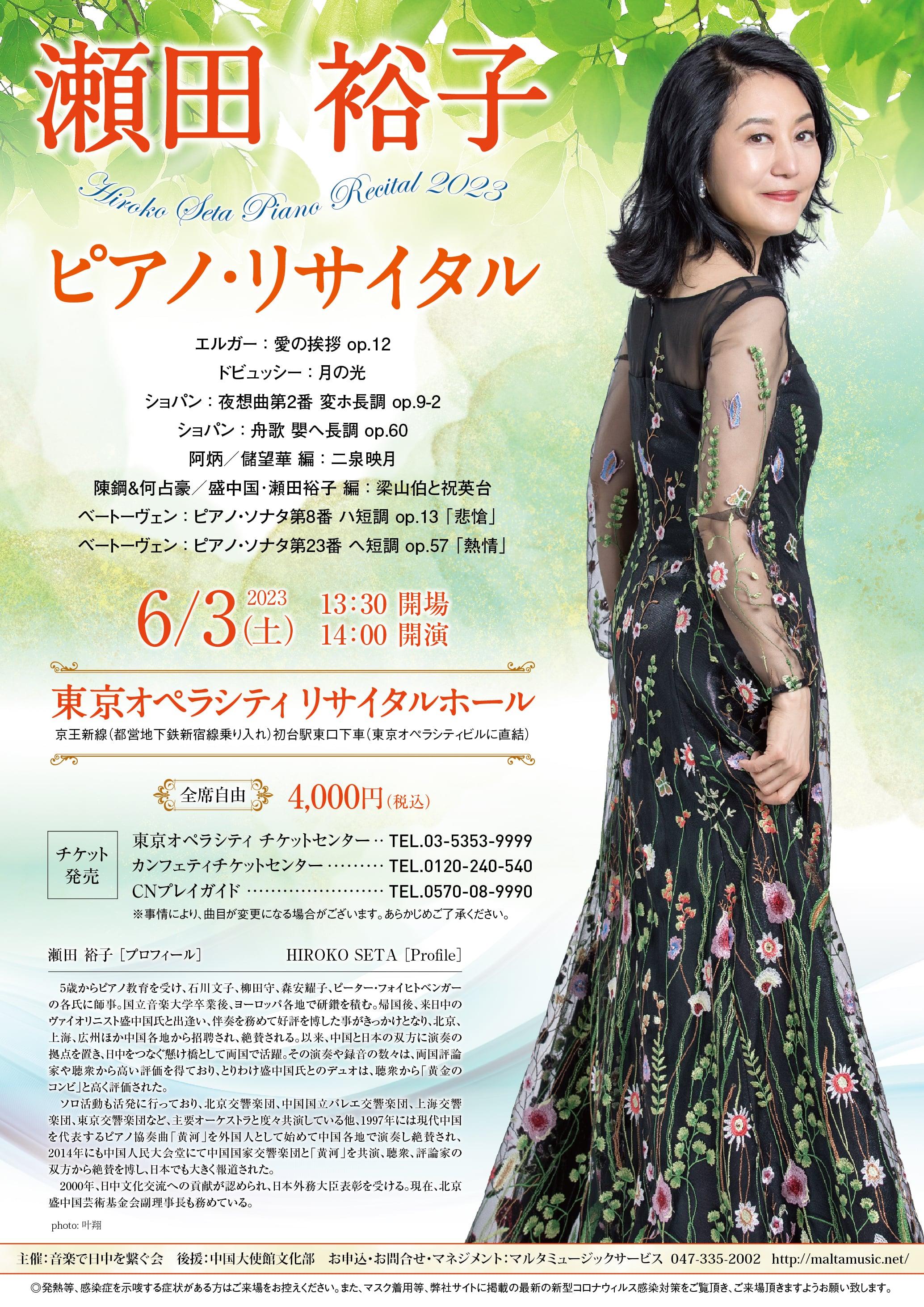 ベートーヴェンのソナタ、ドビュッシー、中国楽曲を演奏致します。